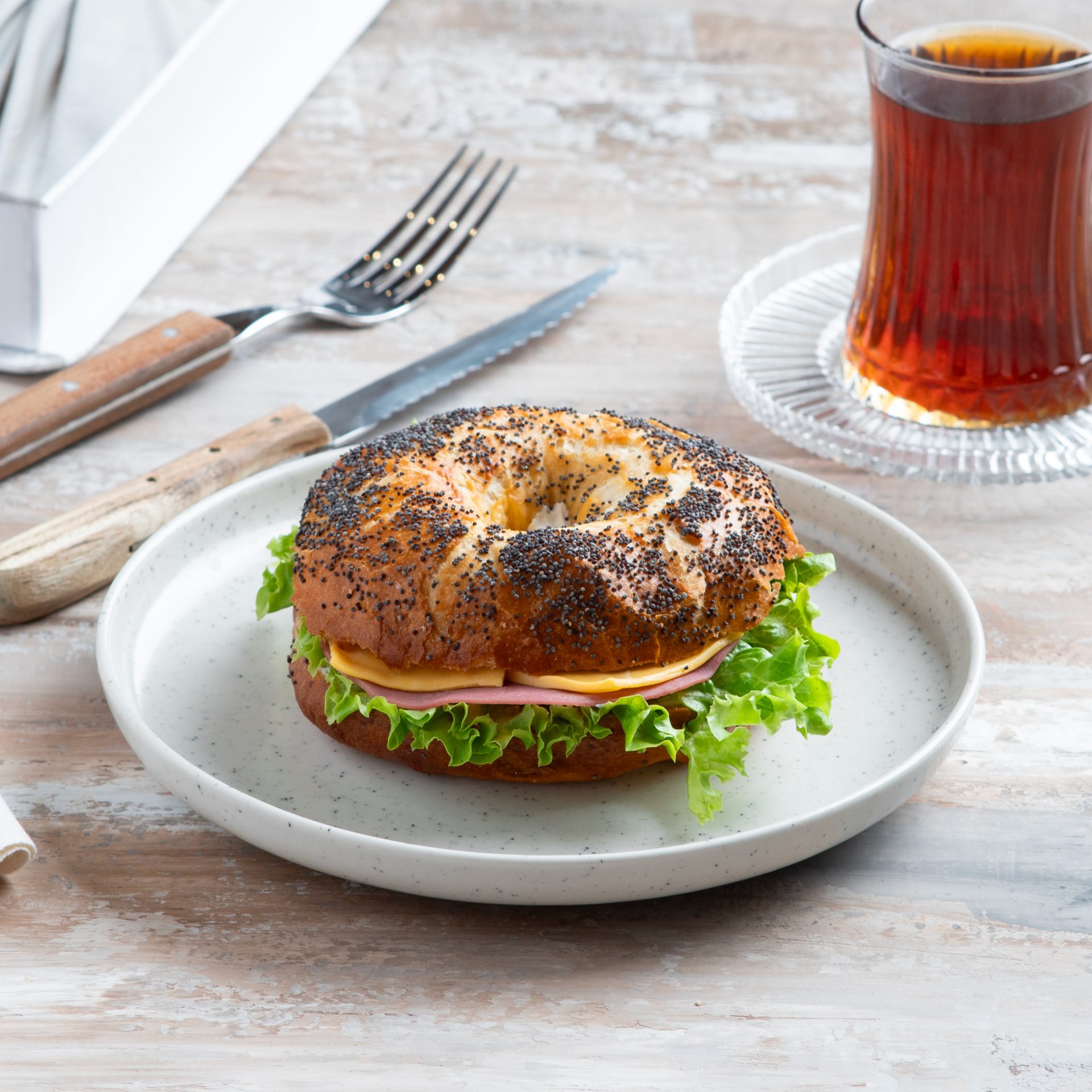 Ekşi mayalı ekmek arasında labne,marul ve dana jambon