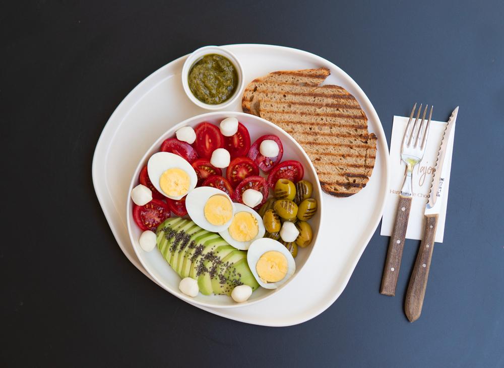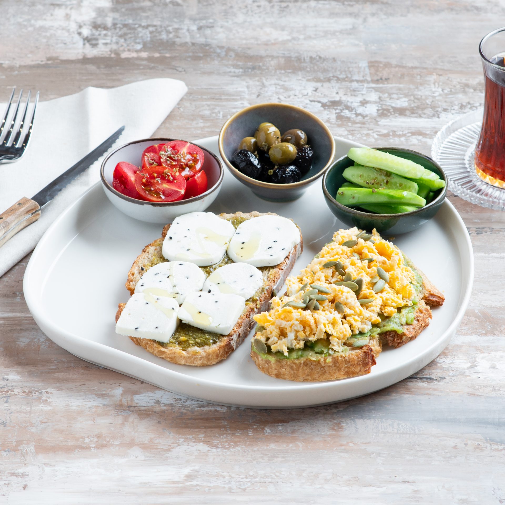 2ADET HAŞLANMIŞ YUMURTA,DİLİM AVAKADO,IZGARA ZEYTİN,DOMATES,TOP PEYNİR EKŞİ MAYALI EKMEK