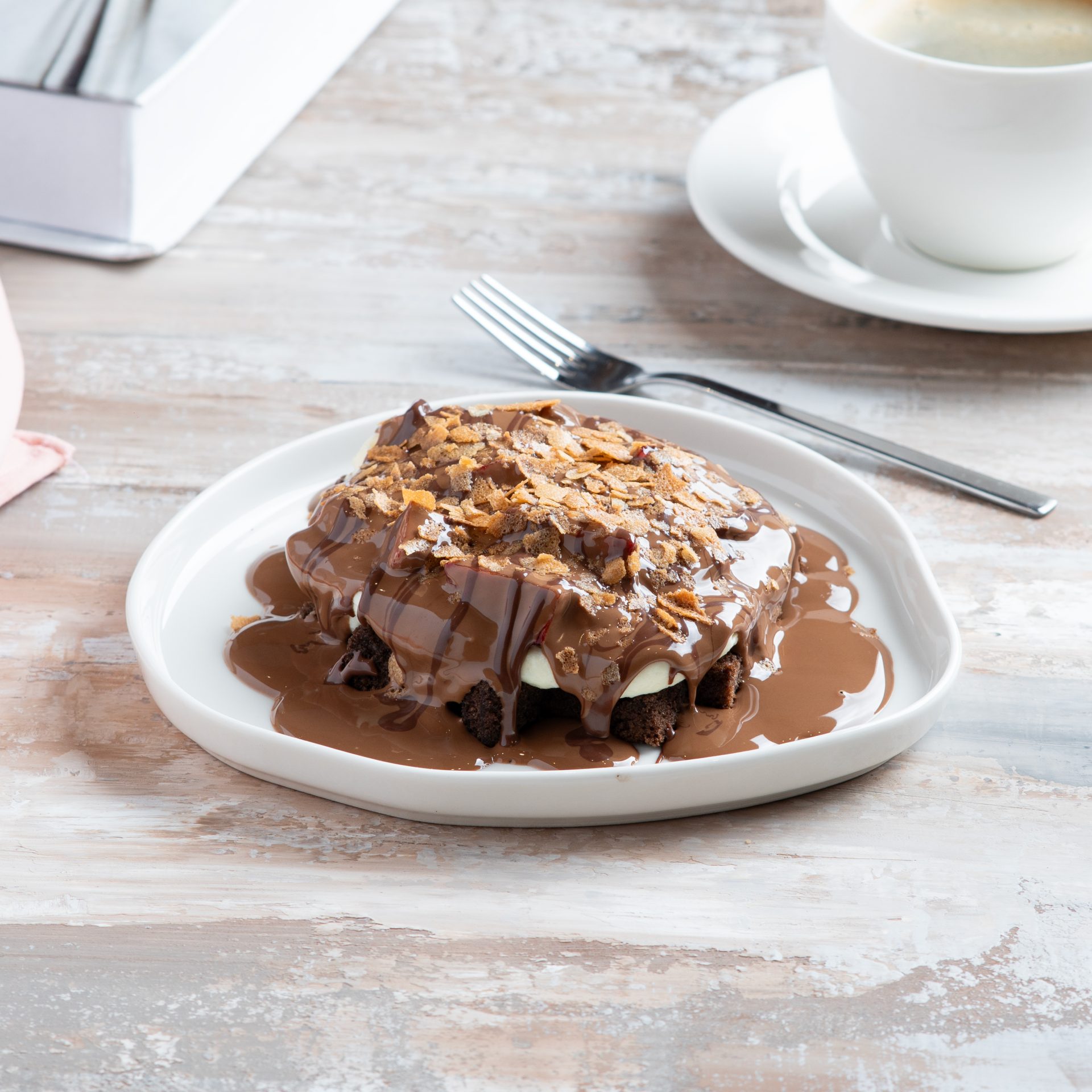 (Adet Fiyatıdır).Bademli kek içine karamel dolgu ve üst katman fındık crunch