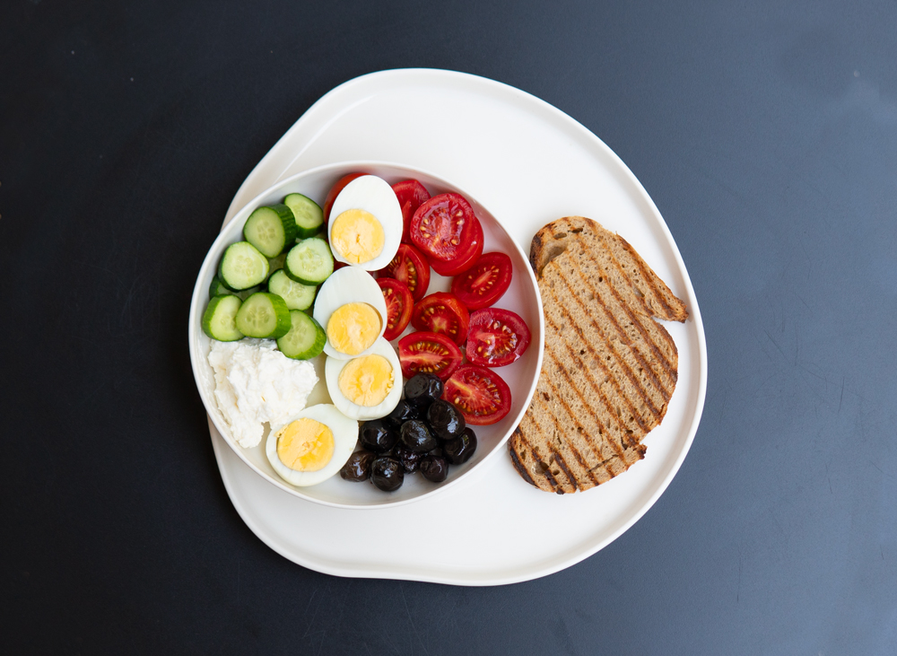 2 ADET HAŞLANMIŞ YUMURTA, SİYAH ZEYTİN, DOMATES, SALATALIK, LOR PEYNİRİ, EKŞİ MAYALI EKMEK