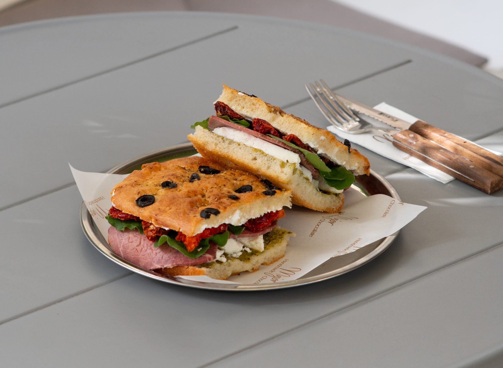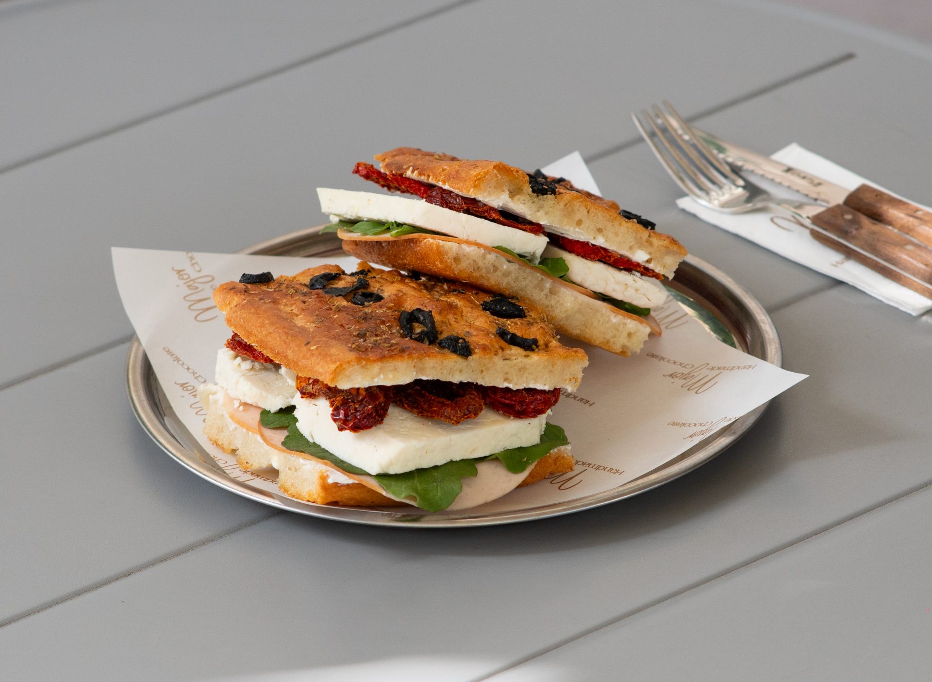 FOCACCİA EKMEĞİ PESTO TULUM PEYNİR DANA KABURGA ET ROKA KURU DOMATES