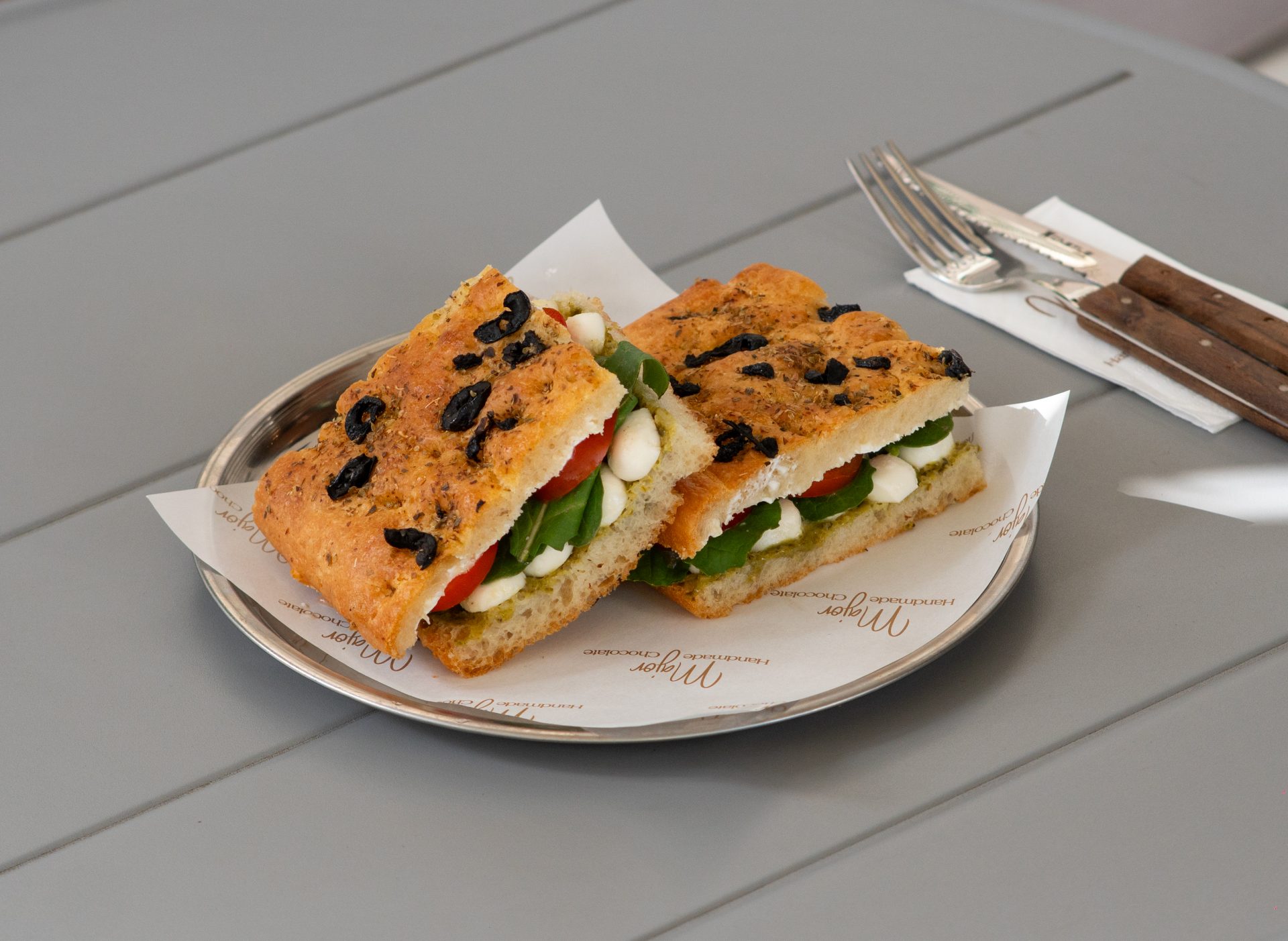FOCACCİA EKMEĞİ PESTO LABNE TOP PEYNİR ROKA ÇERİ DOMATES