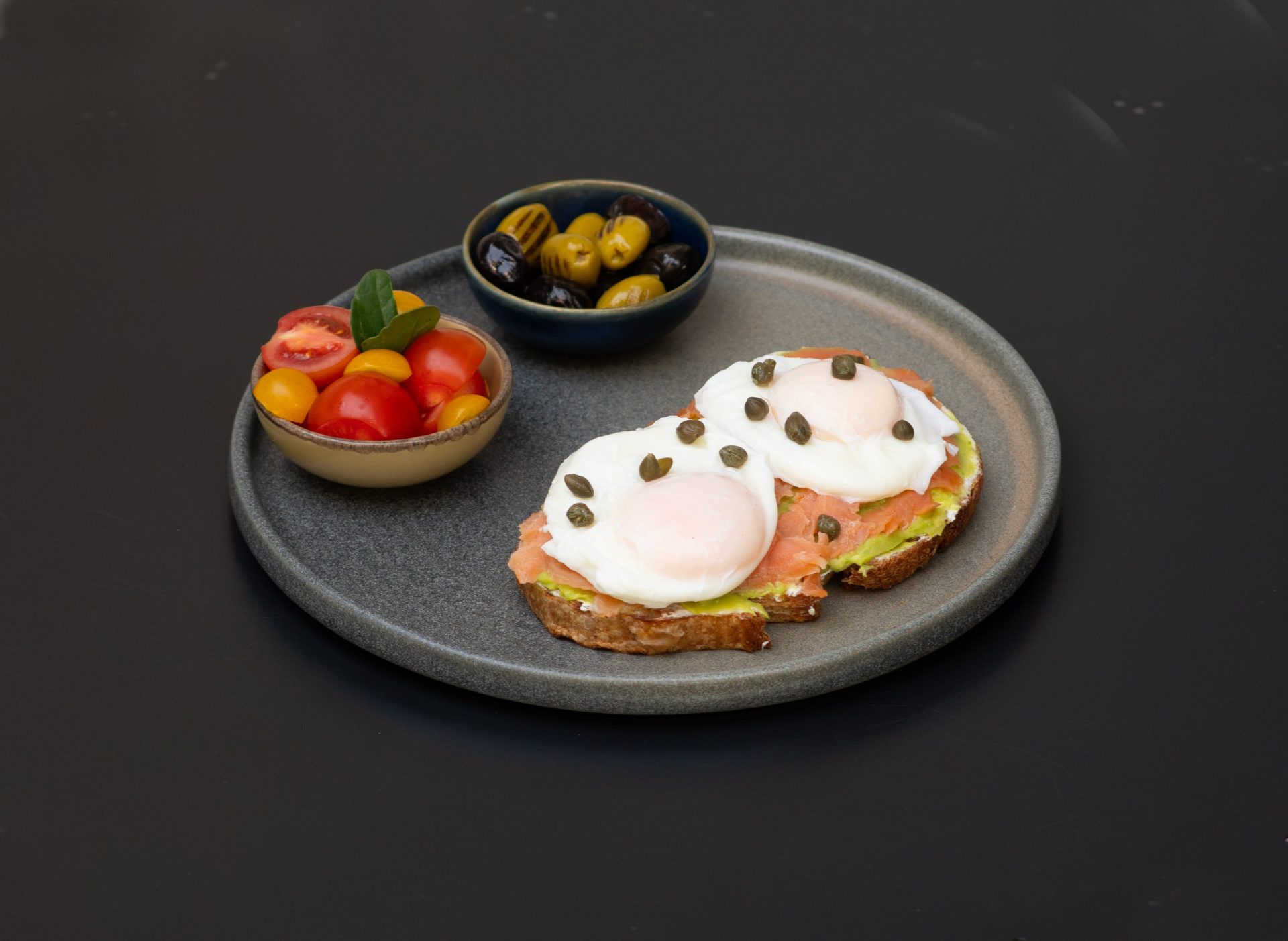 Somon füme, Avokado, Labne, Poşe yumurta, Kapari